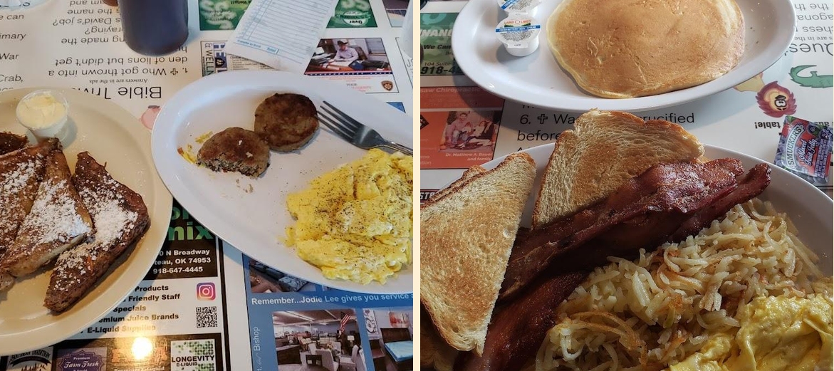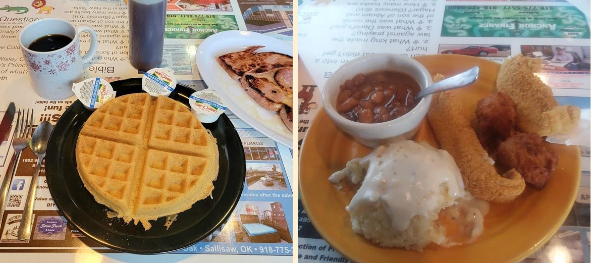 Blue Ribbon Diner is a must-visit for anyone in Sallisaw. The all-day breakfast is a highlight, featuring dishes like chicken fried steak and Oklahoma cowboy hash browns, which locals rave about. The menu offers a variety of comfort food, from burgers to catfish dinners. Specialties like the cheese omelet and double bacon burger are crowd favorites. Visit during off-peak hours for a more relaxed experience, ideally early mornings or mid-afternoons. The spacious layout and wheelchair accessibility make it welcoming for families and groups. Don't miss the impressive pie assortment, although be mindful it might vary. Blue Ribbon serves up not just food, but community spirit.