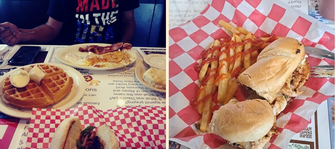 At Blue Ribbon Diner, sample the Chicken Fried Chicken or the Chicken Tenders. For breakfast, try the Spanish Omelette. Pair them with a side of crispy Onion Rings or Fried Mushrooms for a complete experience.